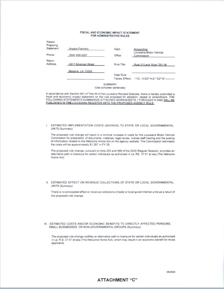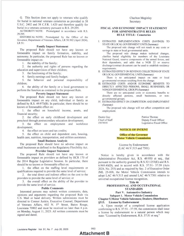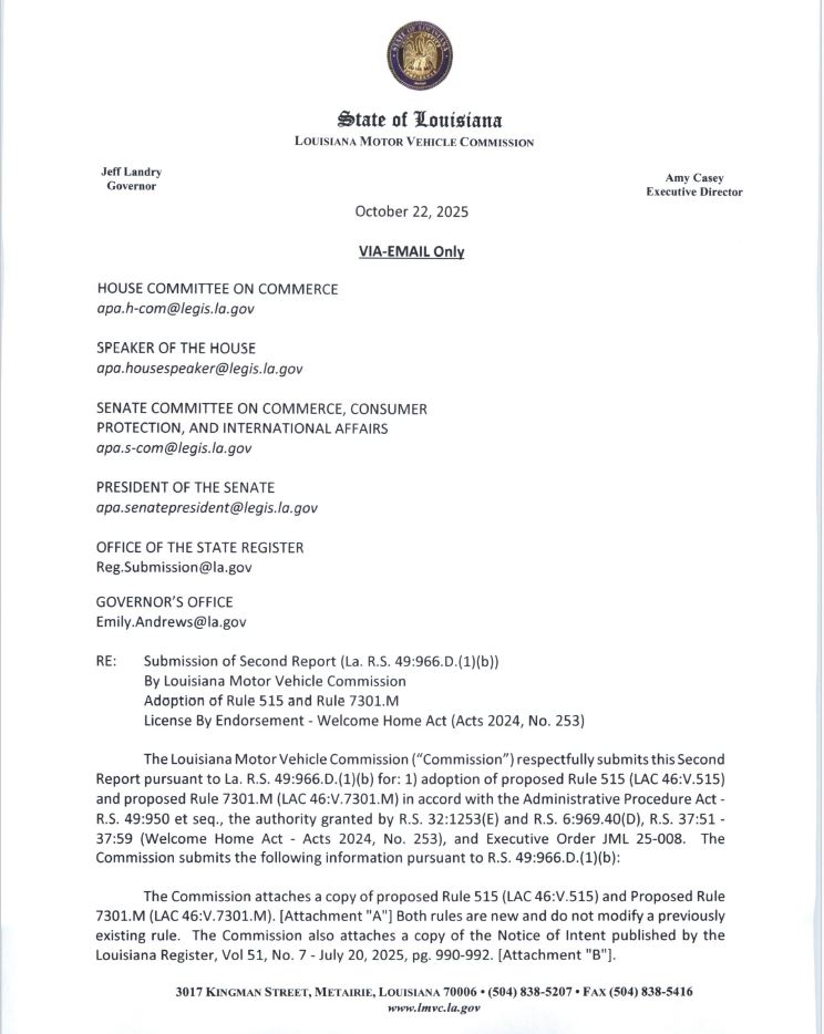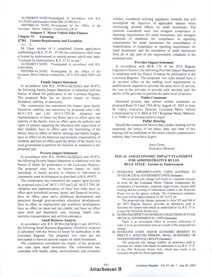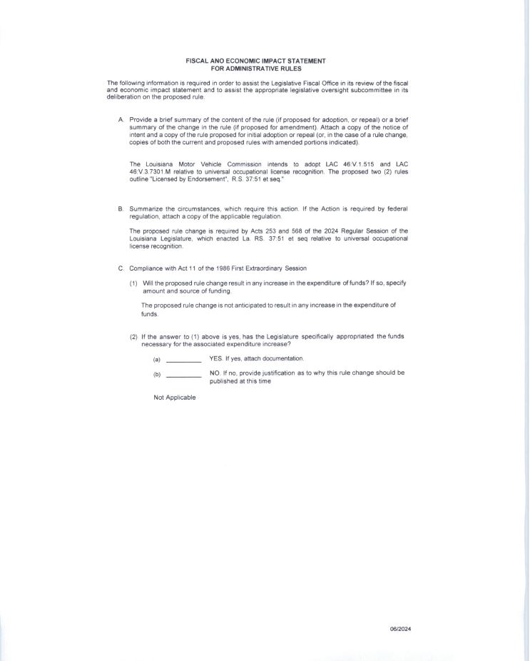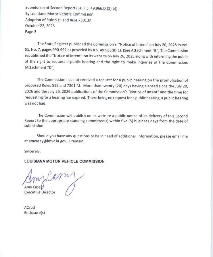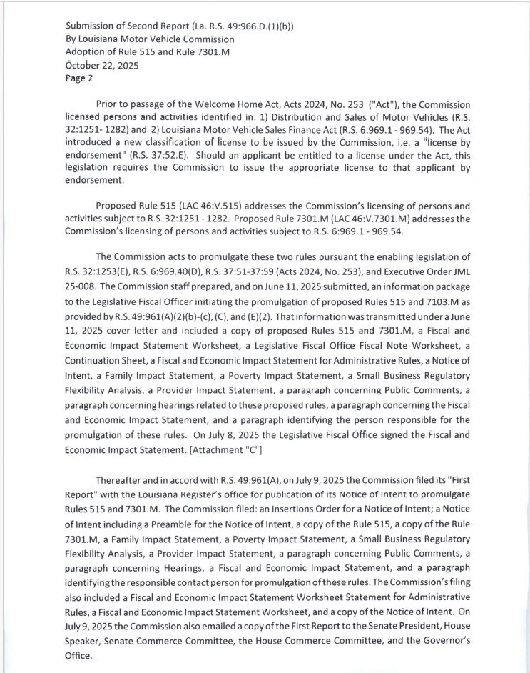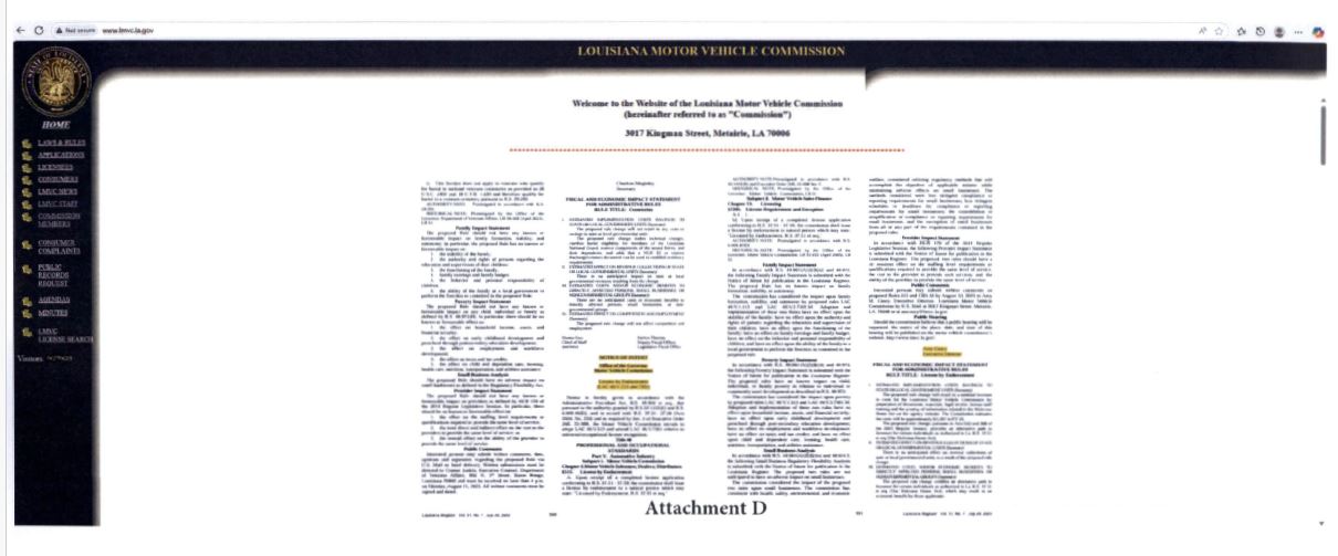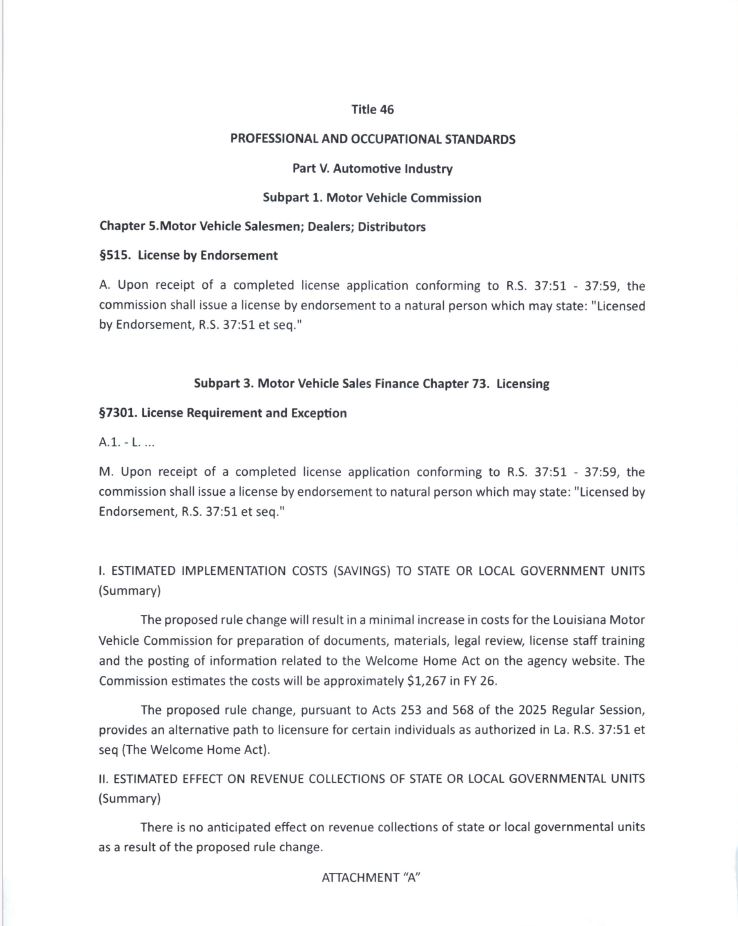 Louisiana Motor Vehicle Commission was created. The Declaration of
